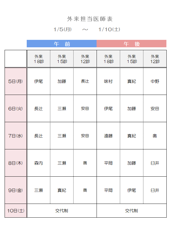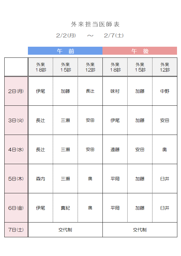 最新情報の掲載に努めておりますが、臨時変更・休診等が生じる場合もございますのでご了承ください。