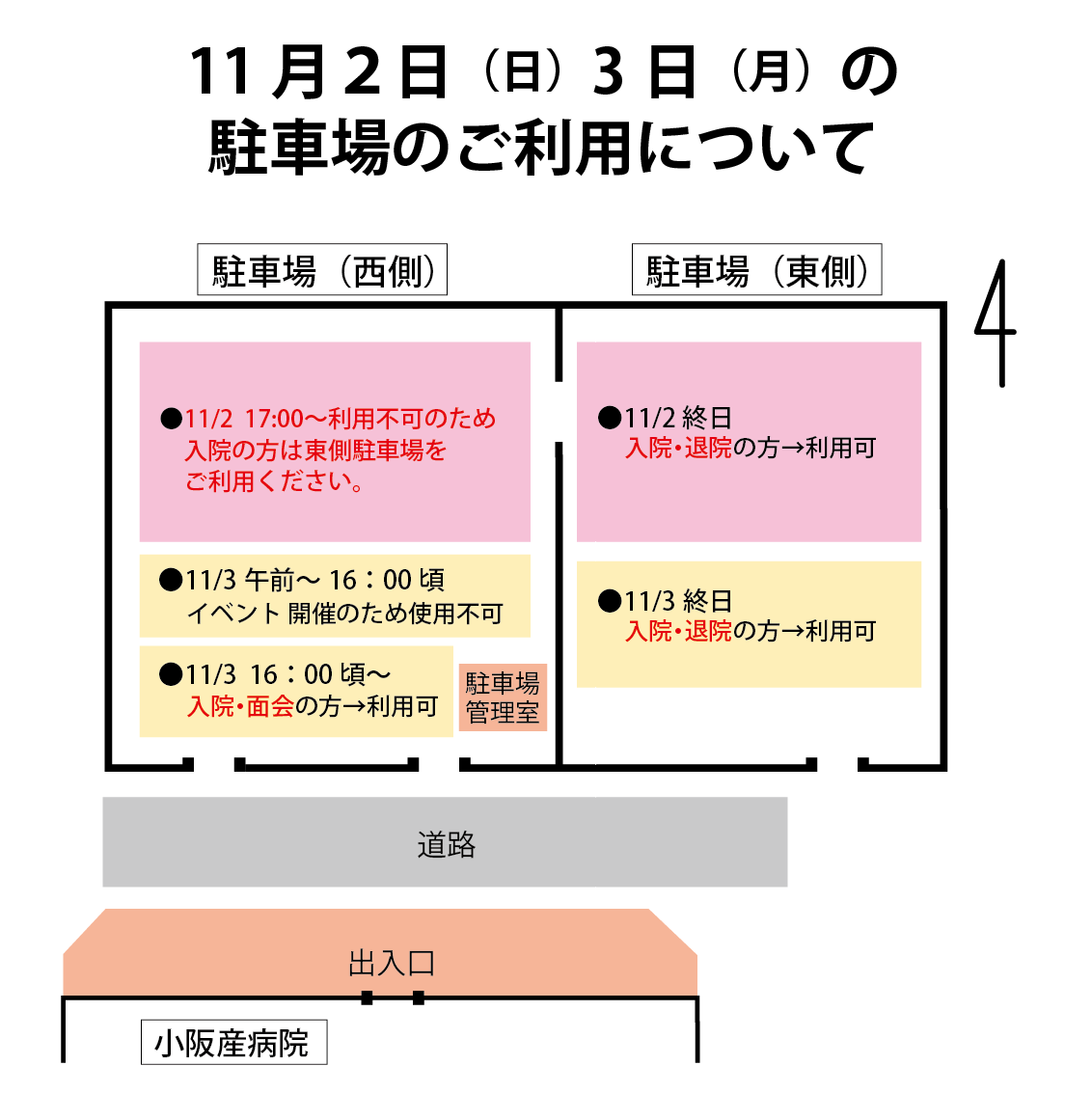 11月3日(月)「KOSAKAすくすくフェスタ」開催にともなう、駐車場のご利用についてお知らせいたします。